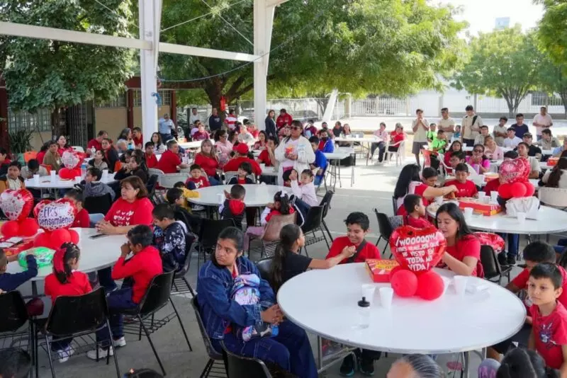 En el marco de una festividad escolar que se desarrolló con actividades deportivas, artísticas y de entretenimiento para la celebración del Día del Amor y la Amistad, la directora del plantel, Profra. Angélica Morales Riestra, dio apertura a la ceremonia en la que dijo es propicio agradecer al gobernador Américo Villarreal Anaya, la inversión en obras sociales básicas provenientes de la SEBIEN.