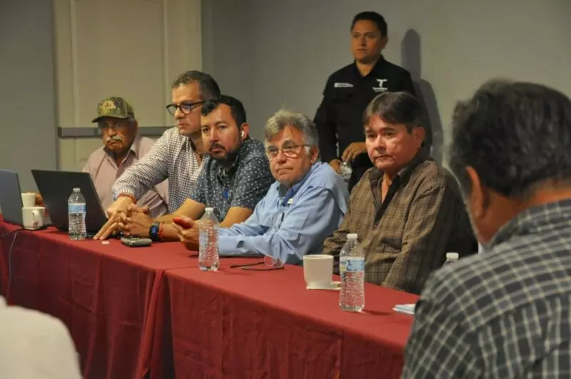 Reynosa, Tamaulipas.– Con el propósito de fortalecer la eficiencia en el uso del agua y consolidar la infraestructura hidroagrícola en la frontera norte del estado, el secretario de Recursos Hidráulicos para el Desarrollo Social, Raúl Quiroga Álvarez, presidió una reunión de trabajo con presidentes y gerentes de las Asociaciones Civiles de Usuarios del Distrito de Riego 026 Bajo Río San Juan, acompañado por el especialista en Tecnologías para la Sustentabilidad, Francisco Valdés Simancas.
