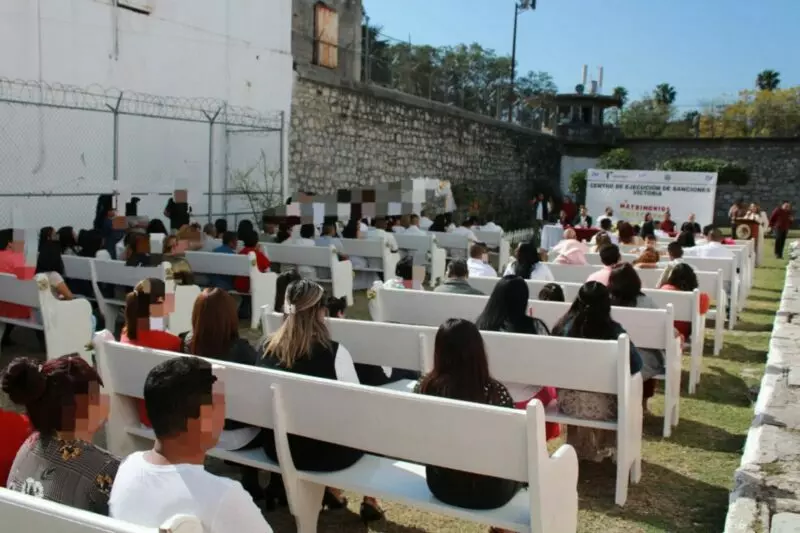 Ciudad Victoria, Tamaulipas.– Con base en el respeto a los derechos de las personas privadas de la libertad (PPLs) y en la estrategia de reinserción social, que tiene a las relaciones familiares entre sus ejes fundamentales, 21 parejas formalizaron su unión al interior del Centro de Ejecución de Sanciones (CEDES) de Ciudad Victoria.