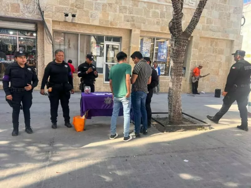 Estas acciones se reforzaron con la entrega de trípticos y violentómetros, así como los recorridos a pie tierra para preservar la seguridad en el primer cuadro de la ciudad.