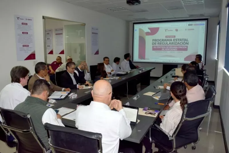 En representación del secretario de Salud, Vicente Joel Hernández Navarro, el comisionado Estatal para la Protección contra Riesgos Sanitarios, Mario Rebolledo Urcádiz, presidió la reunión en la que se implementó esta estrategia estatal que está orientada a fortalecer la atención digna, segura y profesional de las personas con problemas de adicción en Tamaulipas.