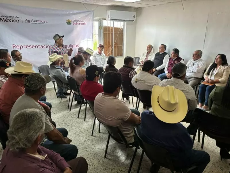 San Fernando, Tamaulipas.- El secretario de Desarrollo Rural, Pesca y Acuacultura, Antonio Varela Flores, en compañía de personal de la SADER, FIRA y SFI, presentó los avances del Programa de Crédito Cosechando Soberanía, una estrategia impulsada por la presidenta de la República, Claudia Sheinbaum Pardo, cuyo objetivo es incrementar la producción de alimentos mediante un enfoque integral que contempla créditos, acompañamiento técnico y esquemas de comercialización, con el fin de elevar el bienestar de las y los productores del campo.