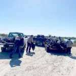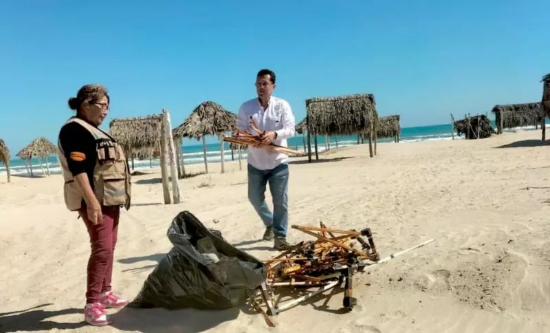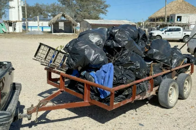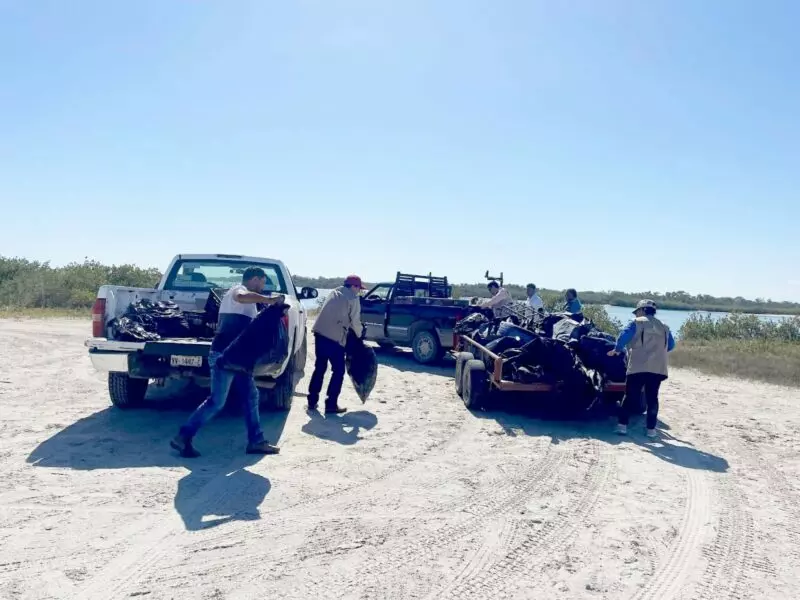 Las cuadrillas lograron limpiar aproximadamente cinco kilómetros de playa, recolectando cerca de mil 800 kilogramos de residuos. Entre los materiales retirados se encontraron estructuras metálicas de toldos abandonados, plástico PET, vidrio y materia orgánica, desechos que afectan directamente a la fauna silvestre y representan riesgos para la salud humana.