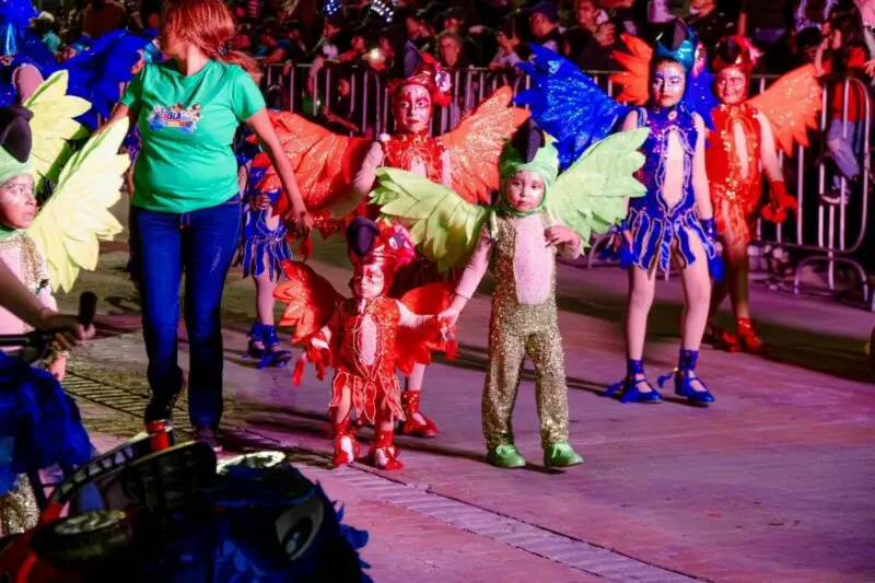 Las calles se transformaron en un corredor festivo donde predominó el ambiente familiar, niñas, niños, mujeres, hombres y adultos mayores disfrutaron la tarde-noche, lo mismo admirando el paso de los carros alegóricos, que aplaudiendo a los participantes y tomando la foto del recuerdo.